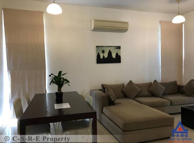 An extremely one or two bedrooms apartment with stunning swimming pool stays in Sala Komreuk commune, Siem Reap city is now available for rent. The unit comes with fully furnished, with/without balcony, leafy tropical garden and spacious parking area. Every bedroom comes with air-con, a bedside table and an en-suite bathroom with hot water. Furthermore, the living room area is quite big and comes furnished and a nice sofa set with a television. The kitchen is big with an ample space for cooking. The surrounding environment is secured and the road condition is good.