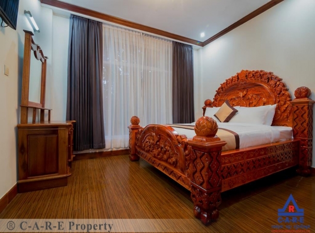 Spacious one bedrooms Apartment with stunning swimming pool for rent is located in Sala Komroeuk Commune, Siem Reap city. The property comes with the large open living areas, landscaped garden, large parking area. the bedroom comes with air-conditioning, a wardrobe and an en-suite bathroom with hot water. Furthermore extra TV and Internet access. acceptable eat-in kitchen with an ample space for cooking. The surrounding environment is secured and the road condition is good.